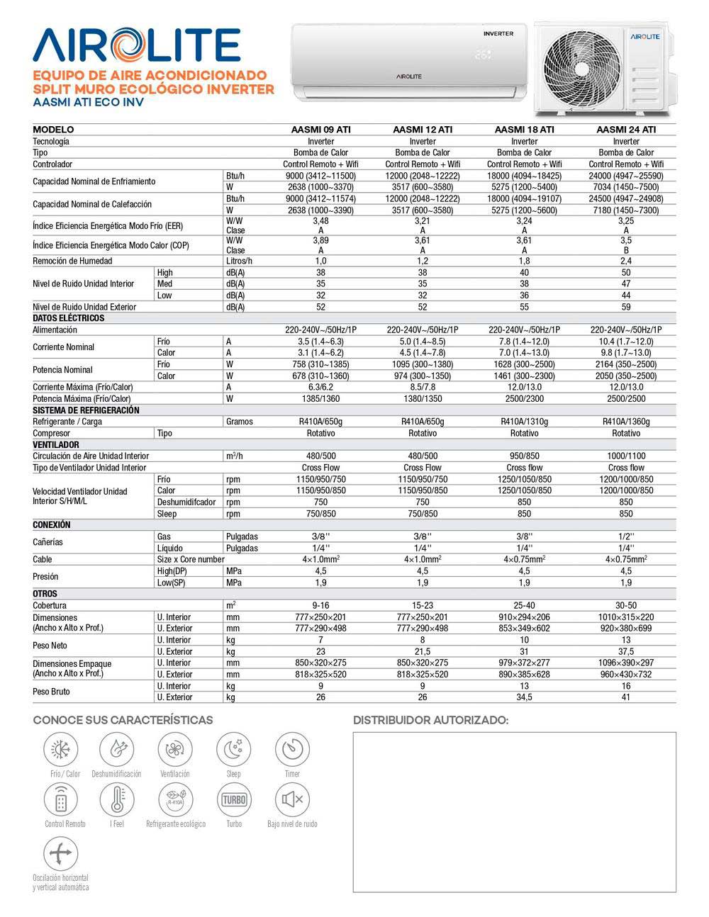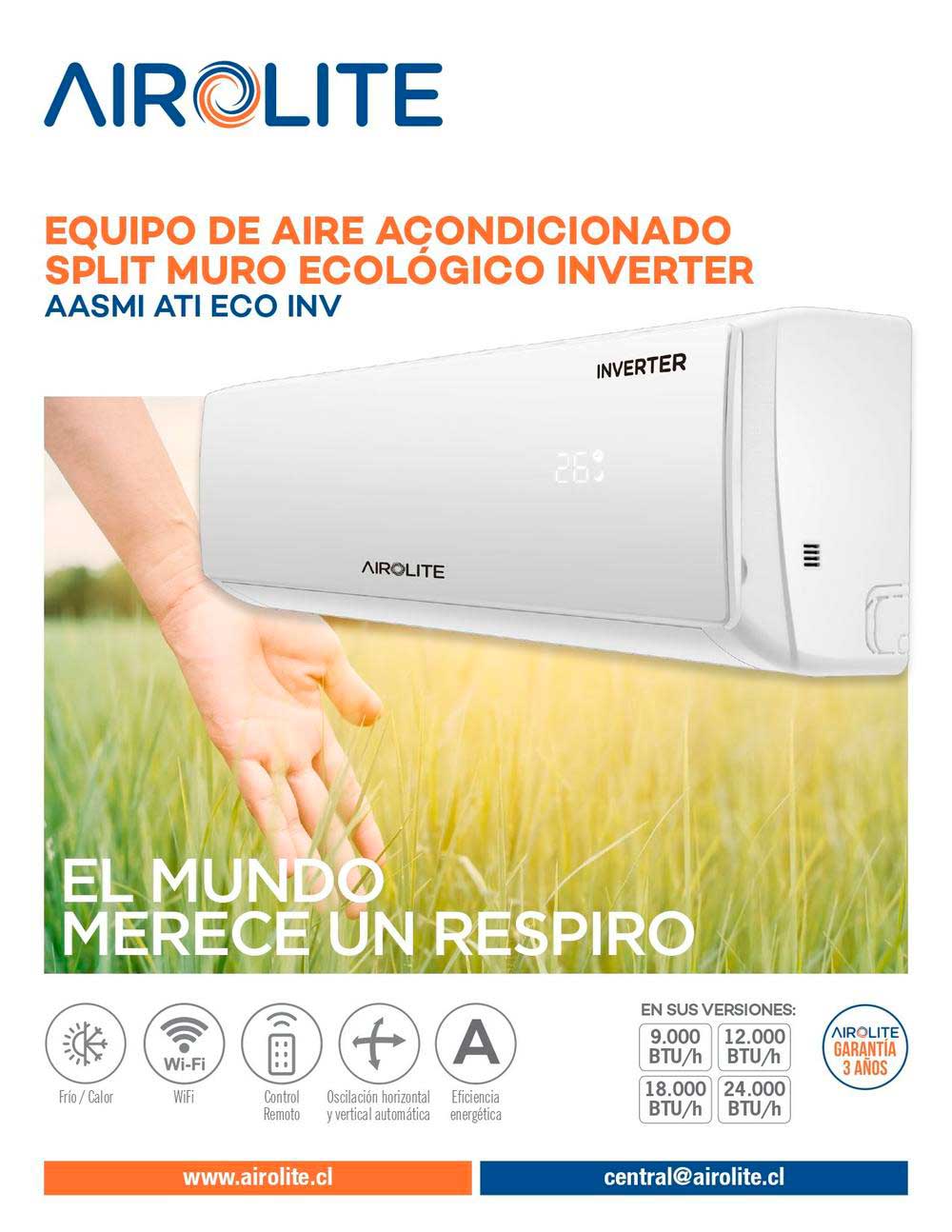 Toda una innovación en términos de climatización y ahorro energético es nuestro Aire Acondicionado AASMI ATI Airolite. La ventaja de este equipo es que incorpora tecnología Inverter; Sus compresores de velocidad variable son capaces de mantener velocidades mínimas, eliminando las partidas a toda potencia, esta función te permitirá climatizar y ventilar tus espacios de manera sana y eficiente pudiendo generar incluso un ahorro energético a corto plazo. Mediante su controlador Wifi podrás programarlo para las diferentes estaciones del año e incluso programar el tiempo de funcionamiento a través de su timer de 24 hrs.Este moderno equipo incluye la mas alta tecnología en cuanto a climatización, logrando ambientes agradables en poco tiempo dándote la seguridad de tener una gran máquina. Combina perfecto con tus espacios al tener un diseño moderno e innovador que hará que lo ames por completo generando espacios confortables para ti y tus seres queridos.