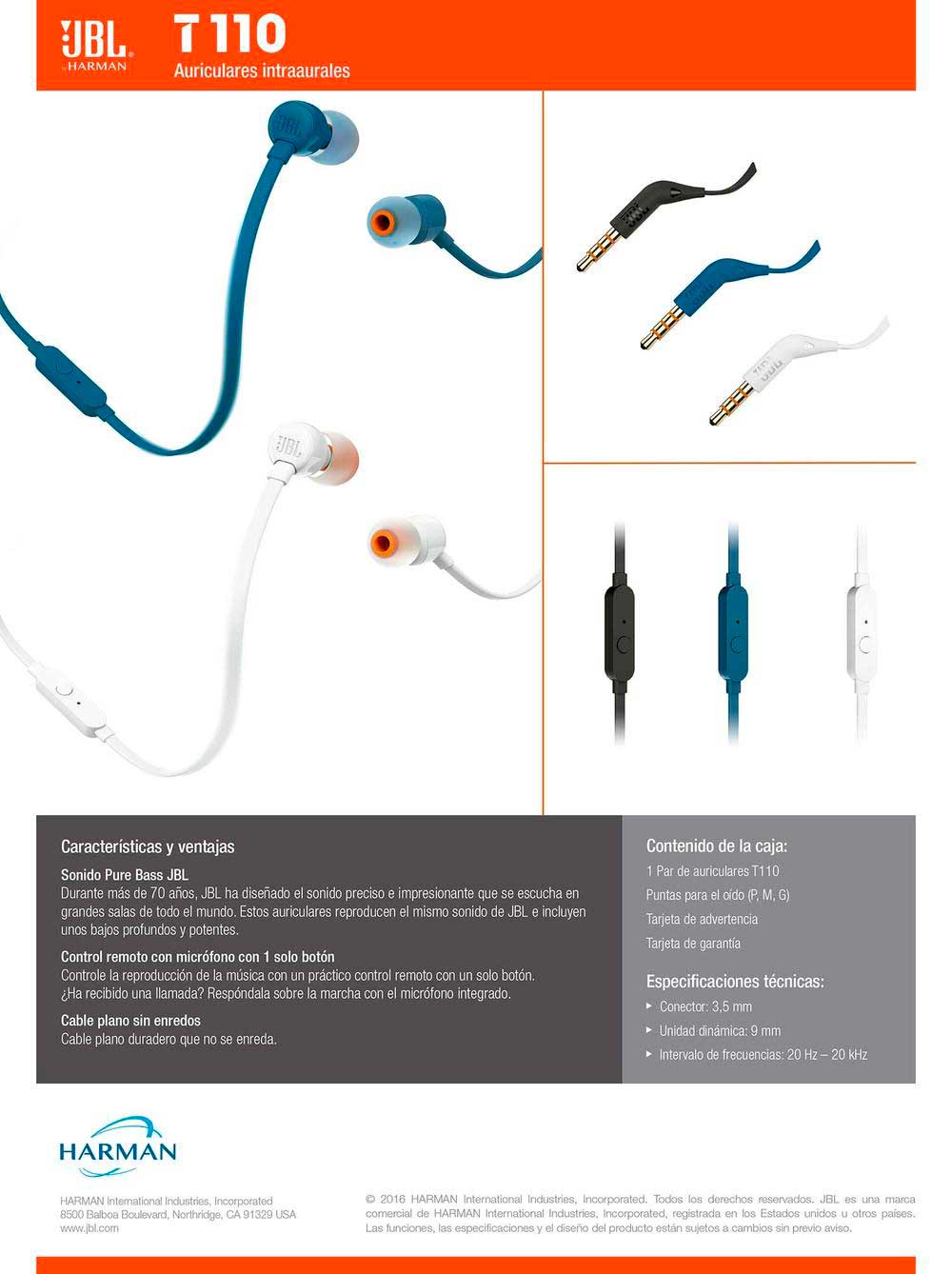 Audífonos In Ear JBL T110 Azules