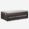 Base Diván revestida en Tela Jacquard Belga color cafe y patas plásticas, cama auxiliar tiene ruedas con freno.