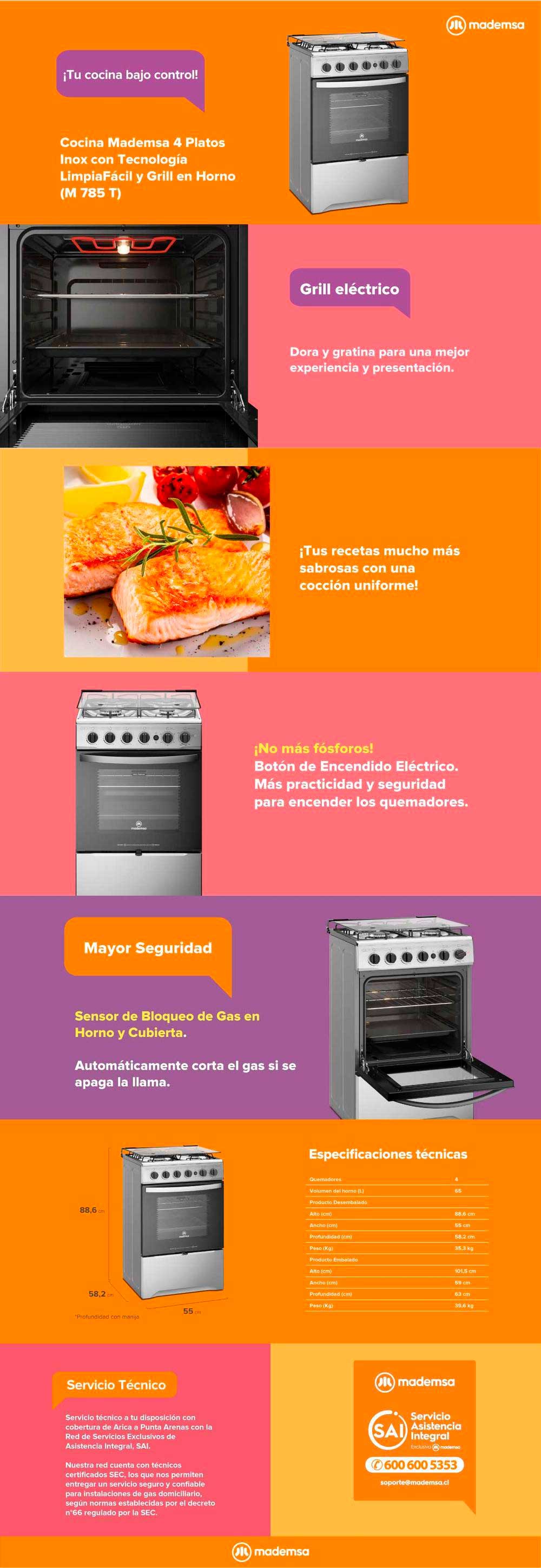 Fast Clean:Revestimiento en el horno que facilita la limpieza. Cubierta con zonas independientes antiderrame. Parrillas de Pletina.Tapa cubierta de vidrio templado.