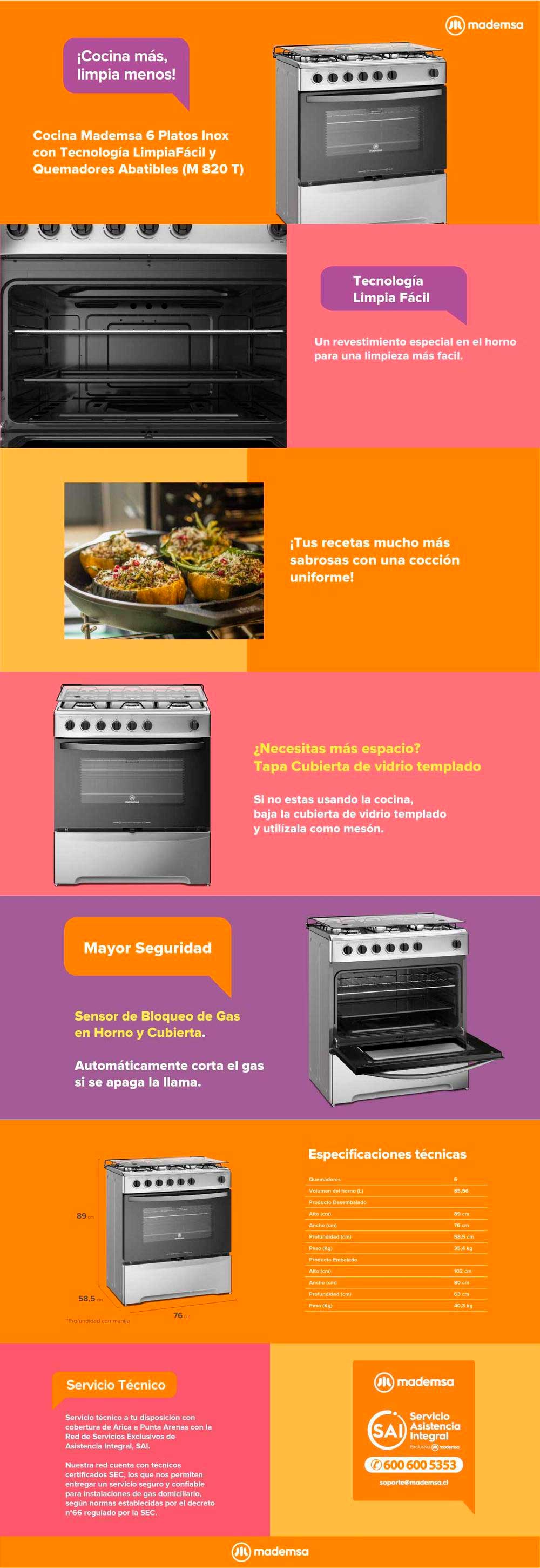 Fast Clean:Revestimiento en el horno que facilita la limpieza. Cubierta con zonas independientes antiderrame. Tapa cubierta de vidrio templado.
