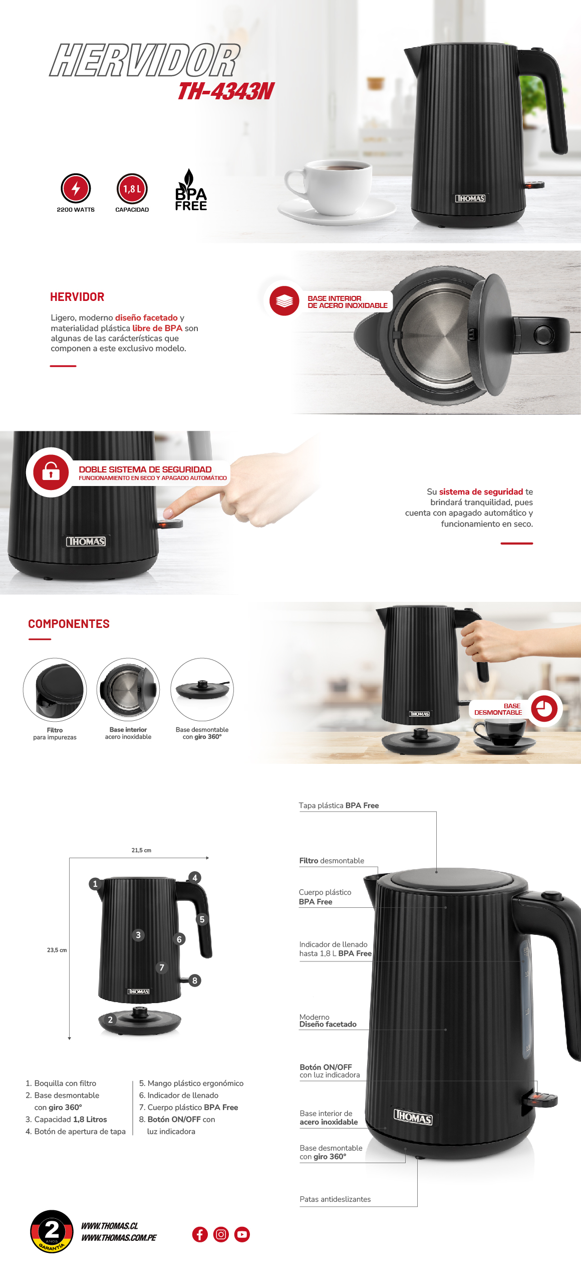 Un hervidor de alta gama con elegantes detalles y base interior de acero inoxidable, confiable y con diseño y tecnología aplicada, que aporta una solución a tu cocina y llegó para satisfacer tus necesidades y facilitar el diario vivir. No querrás buscar otro hervidor luego de conocerlo!.