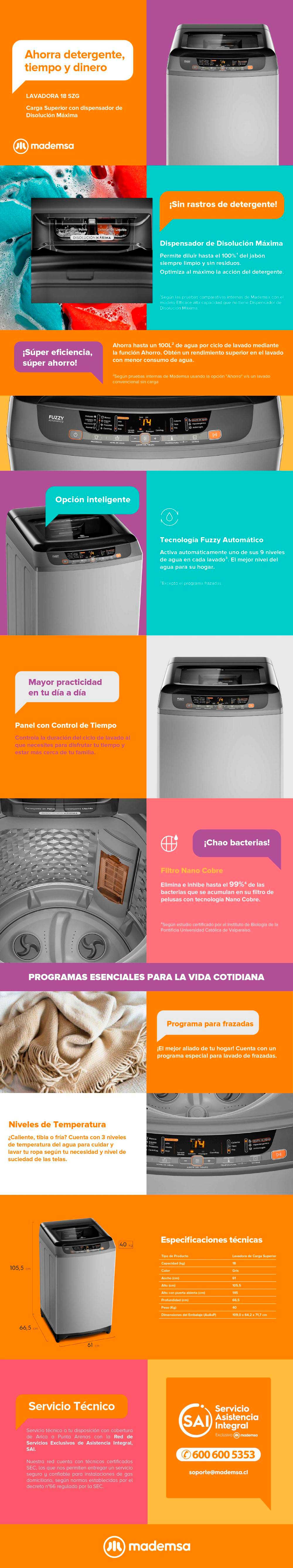 Lavadora automática carga superior cuenta con dispensador de disolución máxima, programa para frazadas, enjuague Hipoalergénico,programa delicado y Diferido.