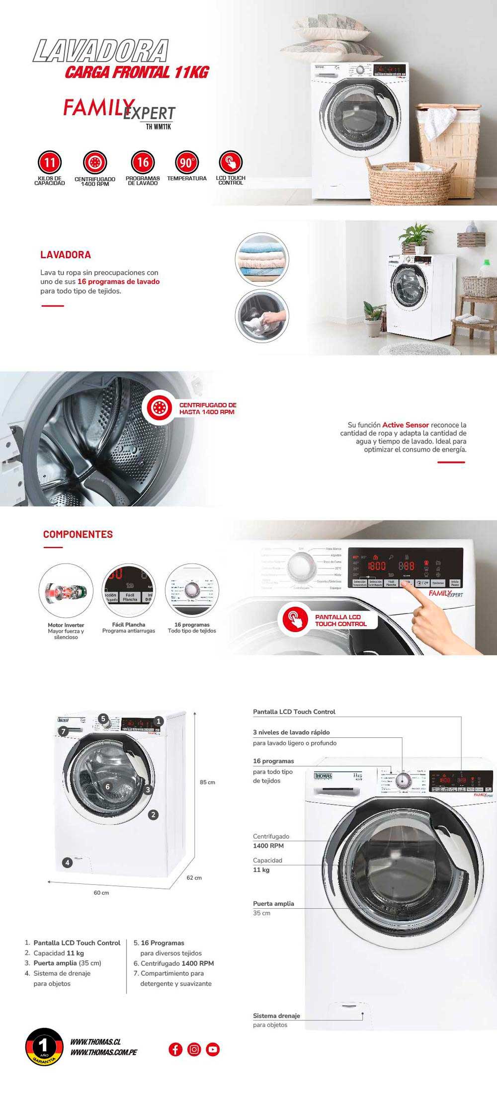 Gran capacidad de hasta 11kg y WideLoad con 35cm de ancho para una carga fácil y cómoda, Alta tecnología y fácil usabilidad con Indicador visual y acústico al finalizar el programa. Completamente hermético para una fácil limpieza.