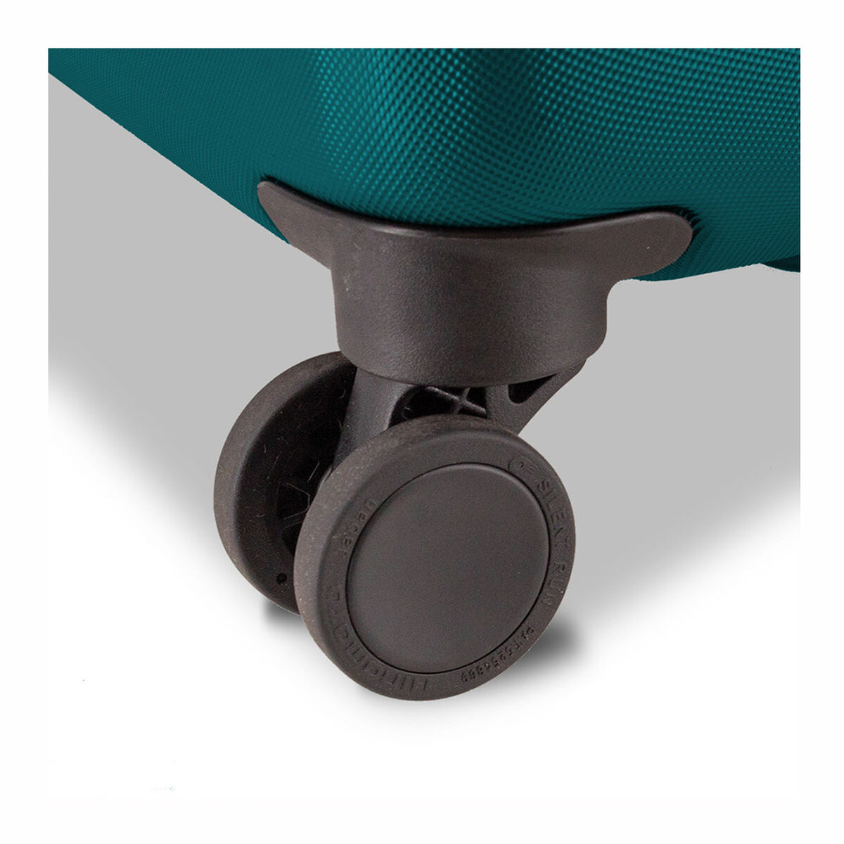 Una pieza icónica de Swissbrand, nuestro modelo más emblemático, fuerte, moderno, ligero y práctico diseño de maleta tamaño cabina de 20” (pulgadas) en colorTeal, de cubierta dura 100% polipropileno con un interior forrado en duradero polyester, organizador interno con zipper, separador de mesh y hebillas ajustables para evitar que tus pertenencias se muevan por todos lados. Sujetador superior con textura anti resbalante, 8 ruedas de alto tráfico giratorias a 360 grados Hinomoto de rodamiento suave y silencioso, zippers de la más alta calidad, TSA fixed lock, sujetador lateral y trolley de resistente aluminio.