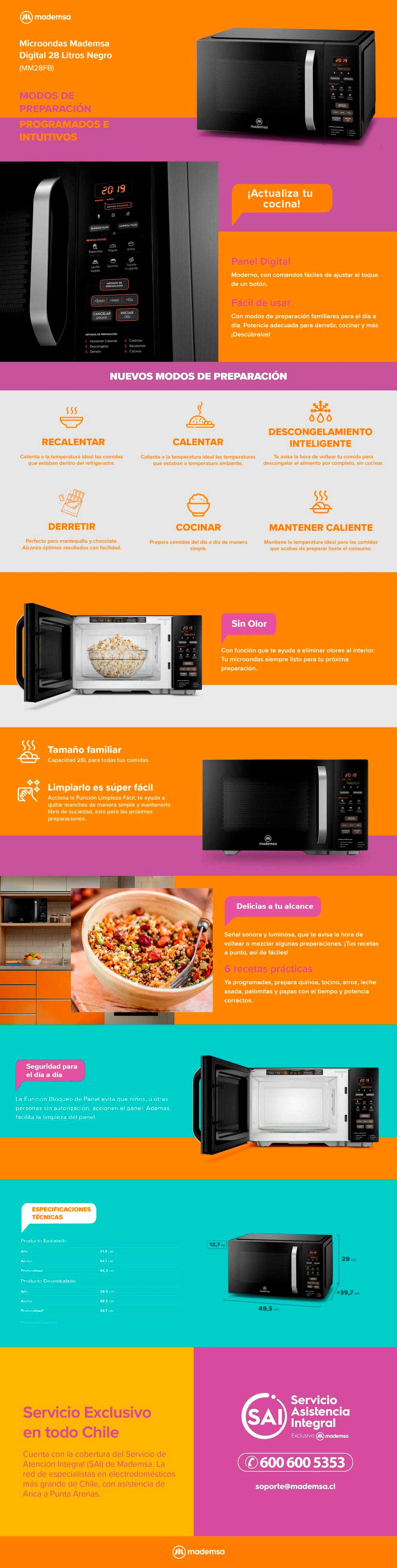 Funciones preprogramadas para descongelar, derretir, calentar, cocinar, recalentar