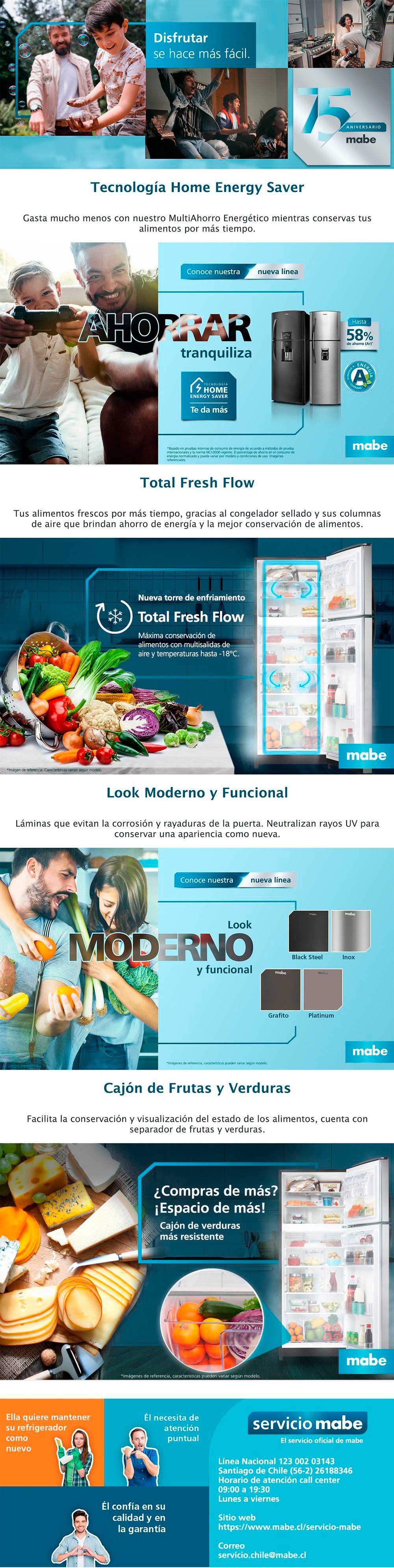 Servicio especializado directo de fábrica, para cualquier requerimiento comunícate al:Línea gratuita nacional:12300203143Línea local Santiago:(56-2) 26188346Correo: servicio.chile@mabe.clHorario de atención:Lunes a Viernes 8:00 am a 6:30 pm